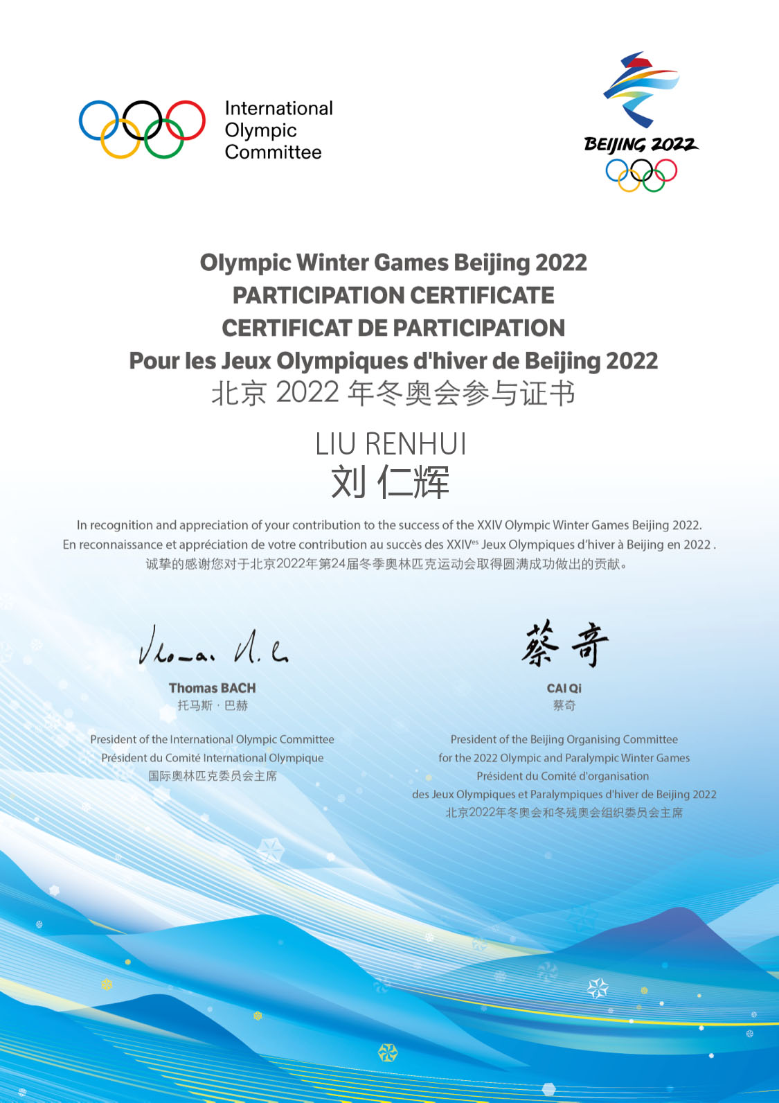 刘仁辉担任冬奥滑雪裁判